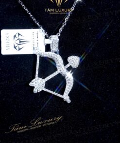 Mặt dây chuyền Kim cương “Picturesque” – MD283 được lấy cảm hứng từ chiếc cung tên tình yêu của thần Cupid (thần thoại La Mã). Mỗi đường nét trên mặt dây chuyền từ dây cung, đến mũi cung tên đều được khắc họa rất chân thực, tạo thành một hình ảnh sống động. Việc sở hữu mũi tên tình yêu này vừa là cách thể hiện đẳng cấp qua món trang sức bằng kim cương và vàng, vừa thể hiện sự hiểu biết nhất định về thế giới.