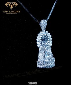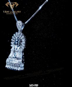 Mặt dây chuyền kim cương vàng ý “Jezebel” – MD789 tại Tâm Luxury được các thợ hoàn kim chế tác và đính kết tỉ mỉ từng viên kim cương tự nhiên sáng ngời đạt chuẩn VVS+, những viên kim cương nhỏ sáng lấp lánh cùng màu trắng sáng bóng của vàng Ý cao cấp đã làm nổi bật cho món trang sức này hơn. Mặt dây chuyền được điêu khắc với hình ảnh Bồ Tát từ bi và hiền từ mang đến sự mộc mạc nhưng không kém phần tinh tế. Sản phẩm này rất phù hợp dành tặng cho người phụ nữ mà mình yêu thương, kính trọng nhất.