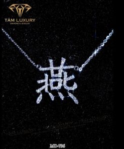 Mặt dây chuyền chữ Hán thư pháp, mang đến vẻ đẹp độc đáo, đậm chất văn hoá Á Đông. Thiết kế của mặt dây chuyền này không quá phức tạp nhưng vẫn tỏa sáng nhờ vào những viên kim cương được kết dính tinh tế, mang lại vẻ đẹp lấp lánh. Sản phẩm dễ dàng phối hợp với nhiều phong cách thời trang khác nhau, từ thanh lịch đến hiện đại.