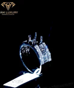 Nhẫn Kim Cương Nam “The Bang” – NNA288 được chế tác từ Vàng Ý 750, nổi bật với độ bền và vẻ đẹp vượt trội. Với chất liệu vàng Ý 750 không chỉ mang lại sự sang trọng mà còn dễ bảo quản và duy trì vẻ sáng bóng qua thời gian. Bên cạnh đó, mẫu sản phẩm này còn sử dụng kim cương chất lượng cao, trong đó bao gồm kim cương tròn 2mm mang đến vẻ tinh tế nhẹ nhàng, cùng các viên kim cương baguette 2x3mm tạo điểm nhấn độc đáo, mạnh mẽ. Các viên kim cương đạt tiêu chuẩn VVS+, gần như không có tạp chất, đảm bảo ánh sáng lấp lánh hoàn hảo. Màu sắc kim cương đạt chuẩn E D, gần như trắng tinh khiết.